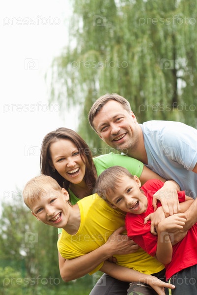 Счастливая семья в парке
