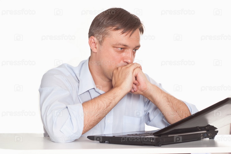 Деловой человек с ноутбуком на белом фоне