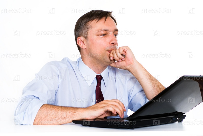 Задумчивый бизнесмен за компьютером