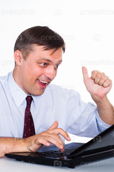 Довольный бизнесмен за компьютером