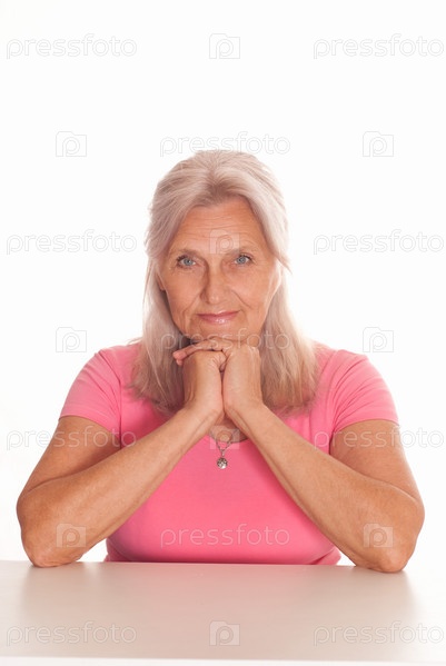 Пожилая женщина на белом фоне