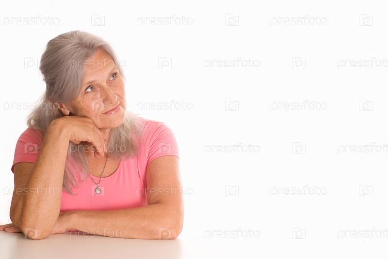 Пожилая женщина на белом фоне