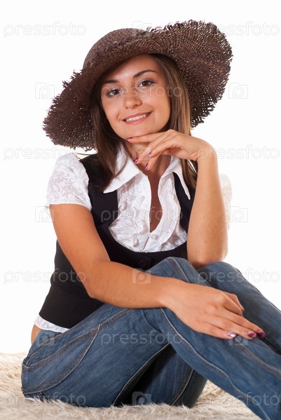 Красивая девушка в шляпе, изолированная на белом фоне