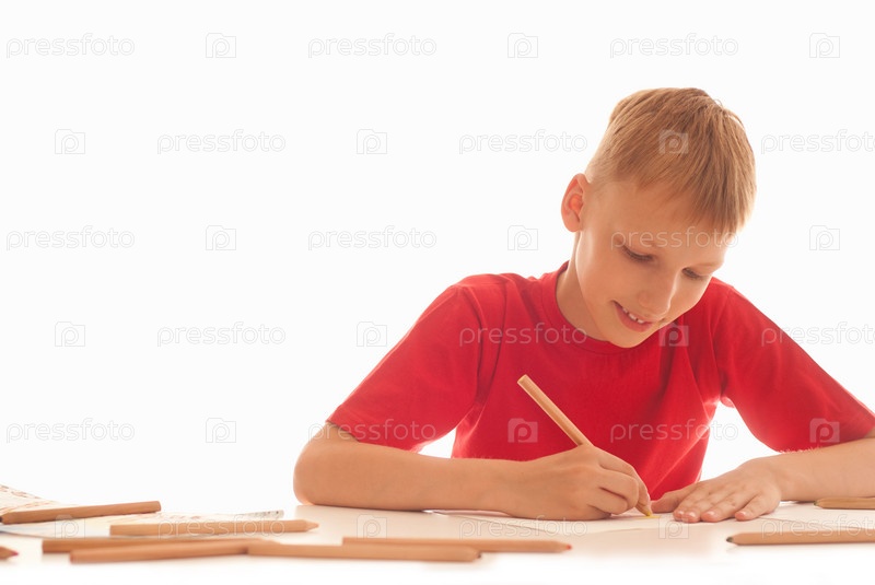 Мальчик рисует карандашами