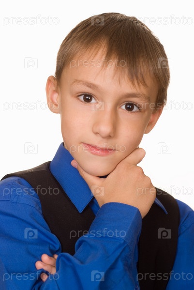 Хороший мальчик в синей рубашке на белом фоне