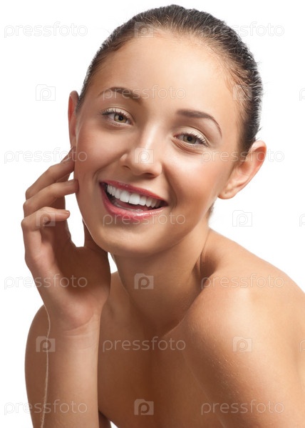 Портрет красивой улыбающейся девушки с чистой здоровой кожей