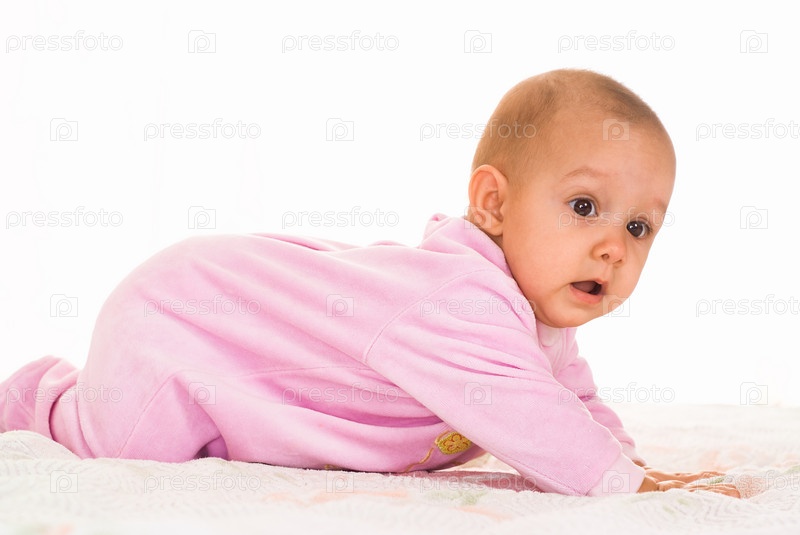 Маленький ребенок в розовом на светлом фоне