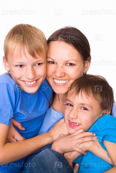 Мать с нежностью обнимает сыновей
