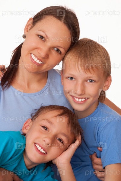 Мама с сыновьями на белом фоне