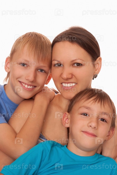 Мама с сыновьями на белом фоне