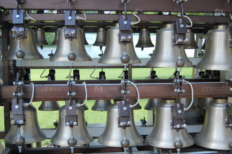 Небольшие колокола на колокольне крупным планом