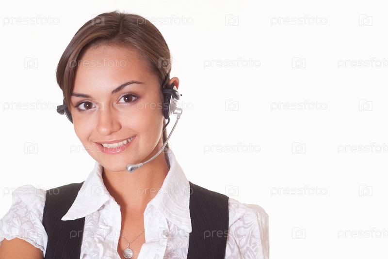 Оператор колл-центра на белом фоне