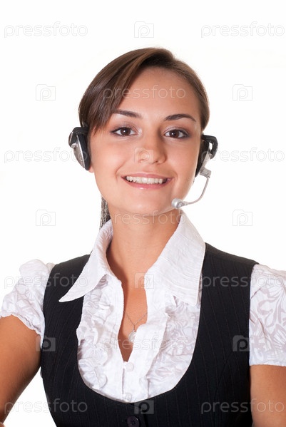 Оператор колл-центра на белом фоне