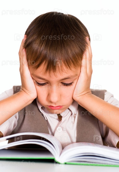 Мальчик сидит и читает книгу