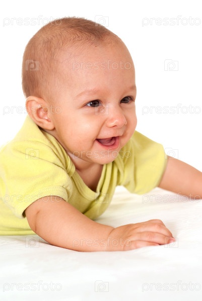 Счастливый маленький ребенок на белом фоне