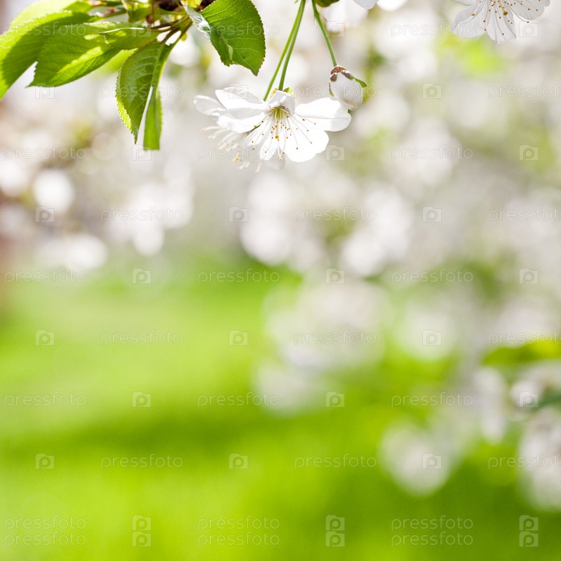 Цветущая ветка яблони в солнечных лучах