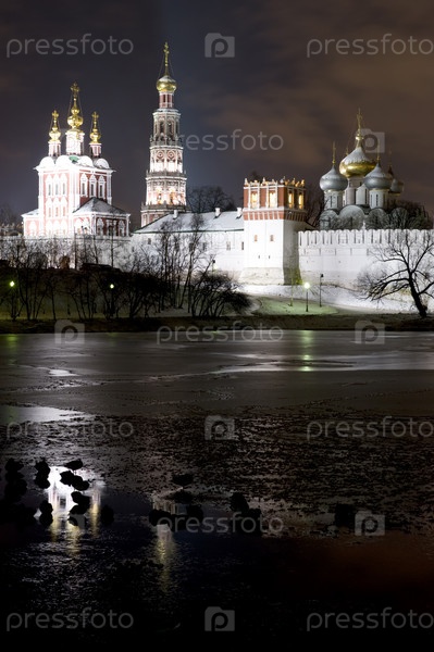 Московский Ново-Девичий монастырь в ночное время России