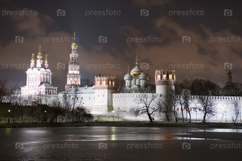 Московский Ново-Девичий монастырь в ночное время России