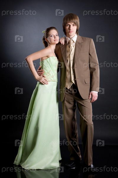 Молодая женщина и мужчина в свадебной одежде