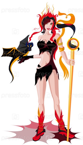 Нарисованная девушка с маленьким дракончиком