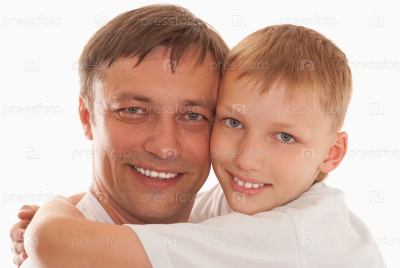 Отец и сын на белом фоне