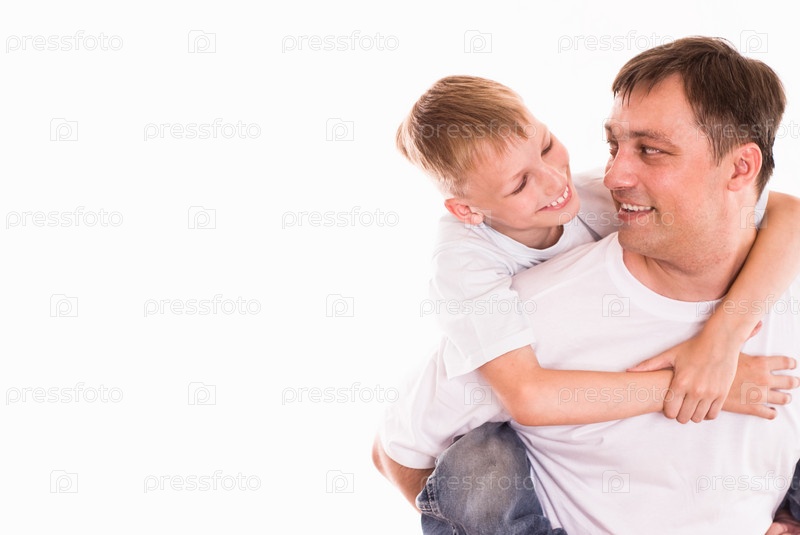 Отец и сын на белом фоне