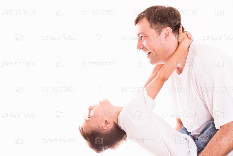 Отец держит сына на руках