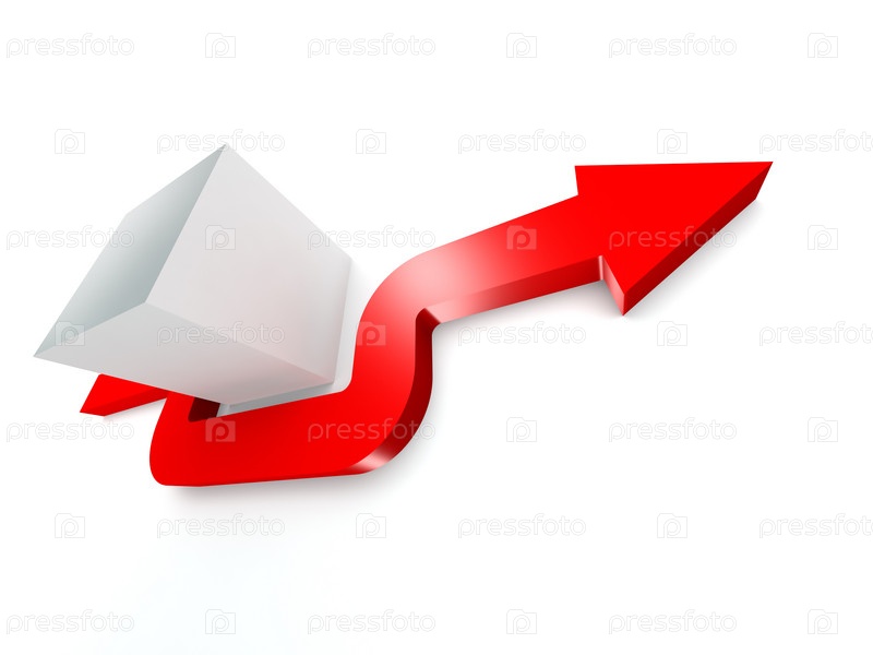 Концептуальное 3D-изолированное изображение стрелки, выделенной на белом