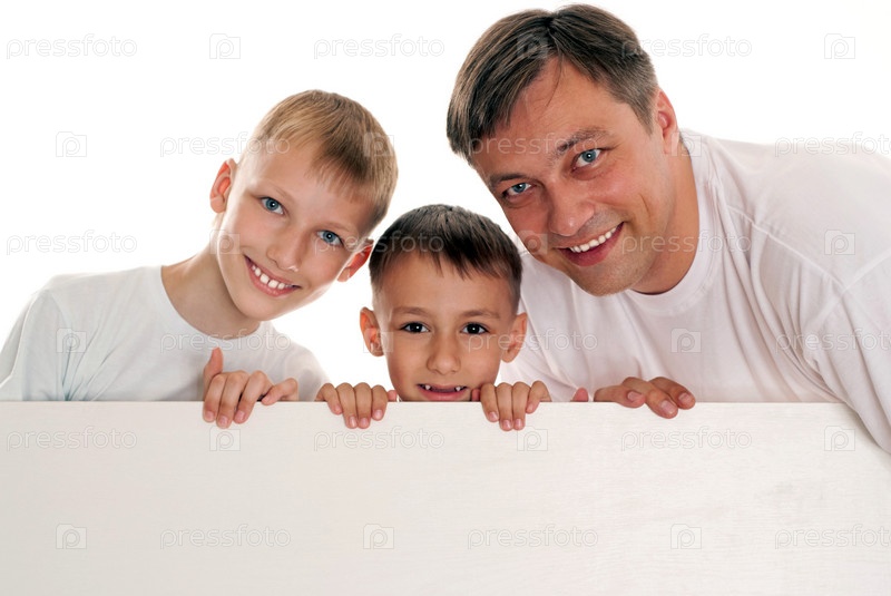 Отец с сыновьями на белом фоне