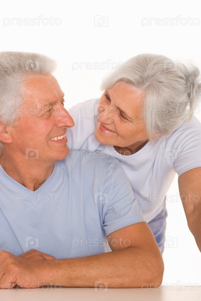 Пожилая пара на белом фоне