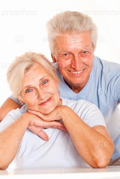Пожилая пара на белом фоне