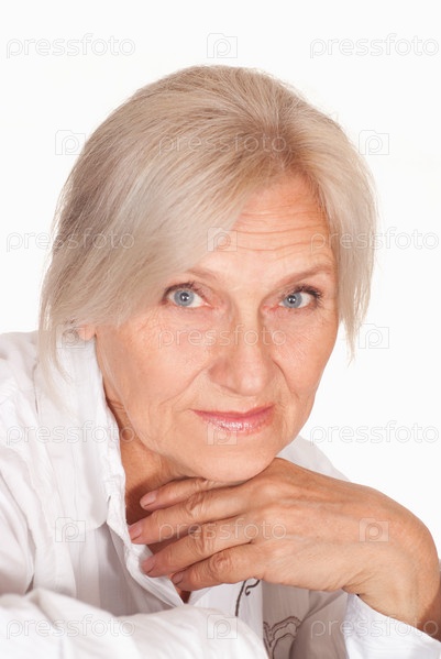 Красивая пожилая женщина на белом фоне