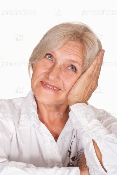 Красивая пожилая женщина на белом фоне