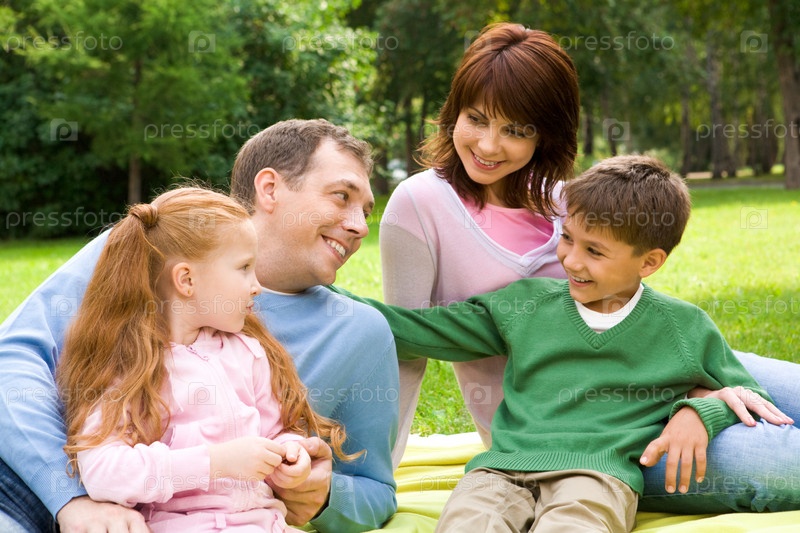 Портрет семьи, отдыхающей на траве вместе