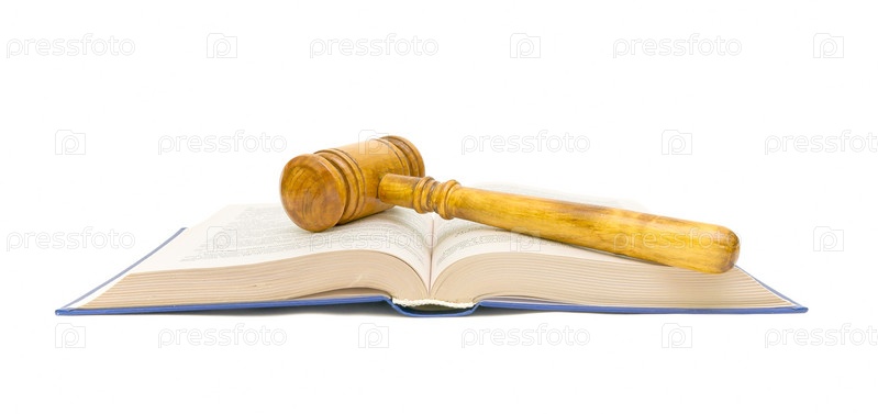 Открытая книга и молоток, изолировано на белом фоне