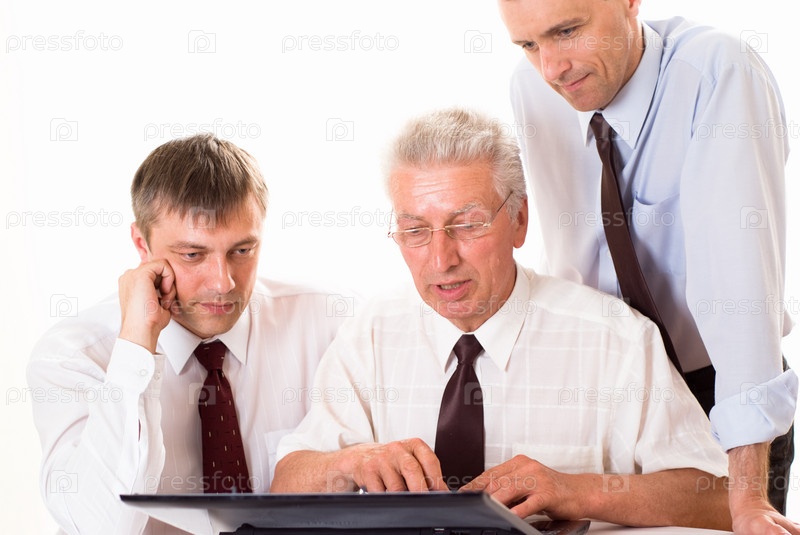 Три работающих бизнесмена, изолированные на белом фоне