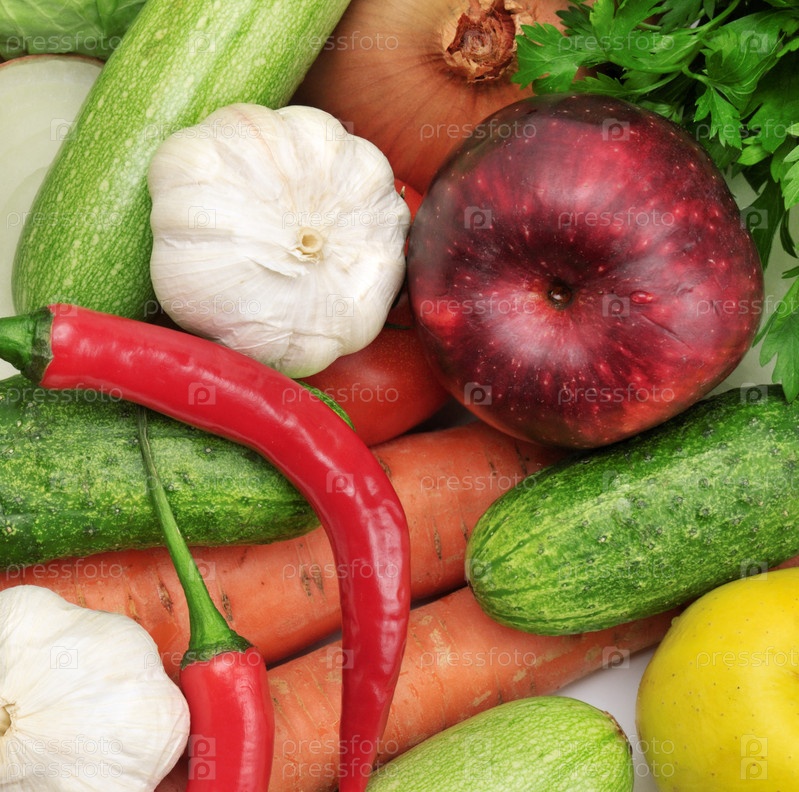 Фрукты и овощи, изолированные на белом
