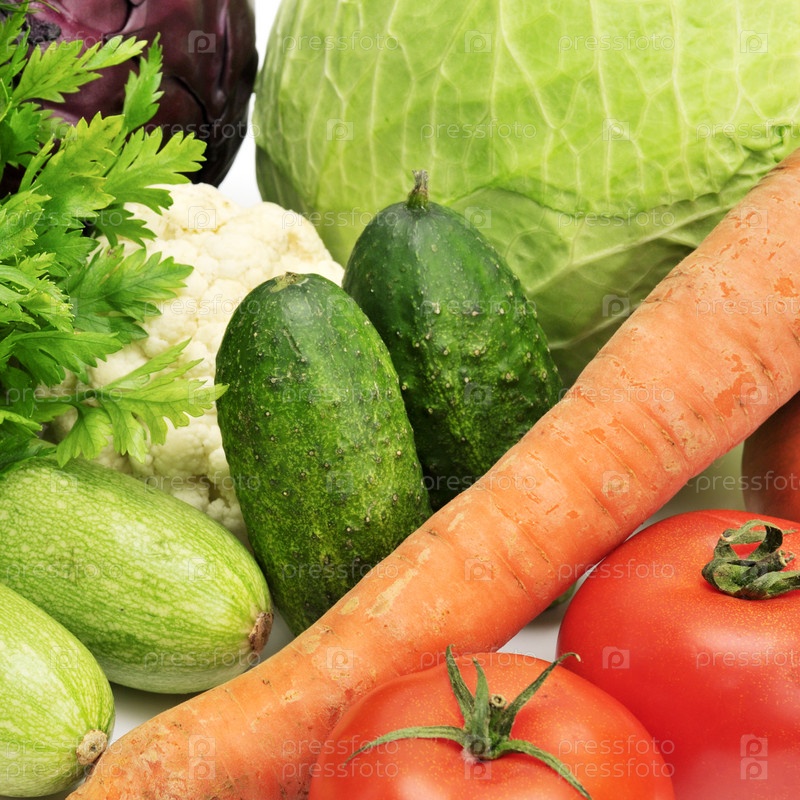 Фрукты и овощи, изолированные на белом