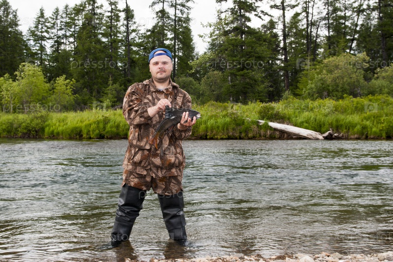 Рыбак с пойманным хариусом
