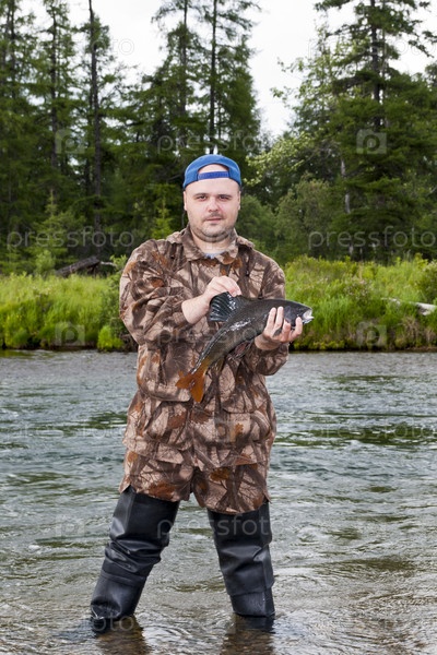 Рыбак с пойманным хариусом