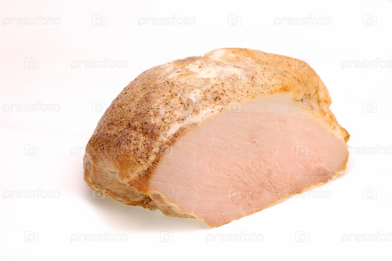 Кусок копченого мяса на белом фоне