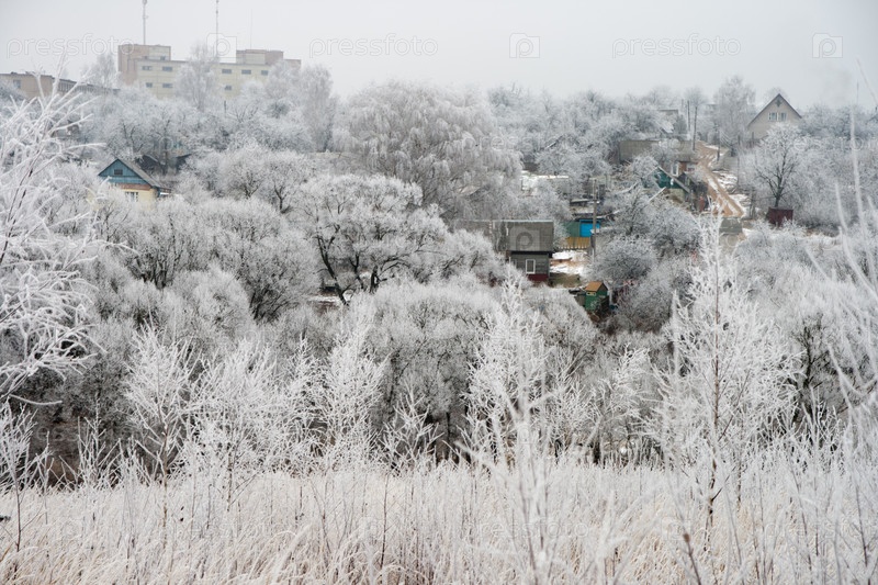 Кусты и трава, покрытые инеем