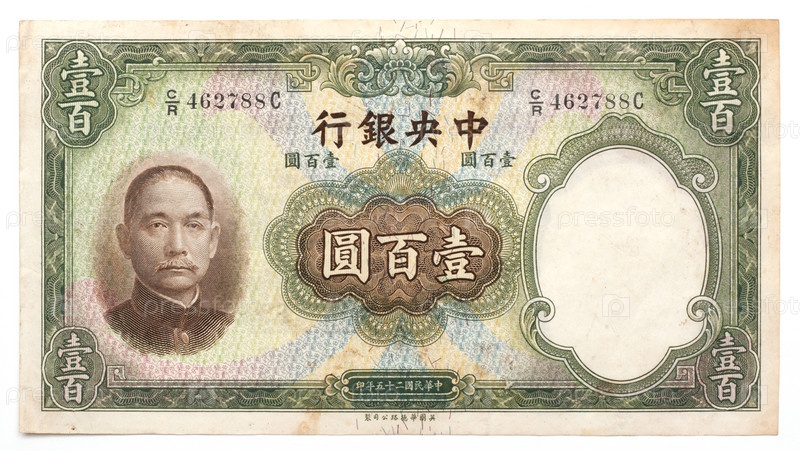 Старение китайского законопроекта с мужчинами сцены на белом фоне
