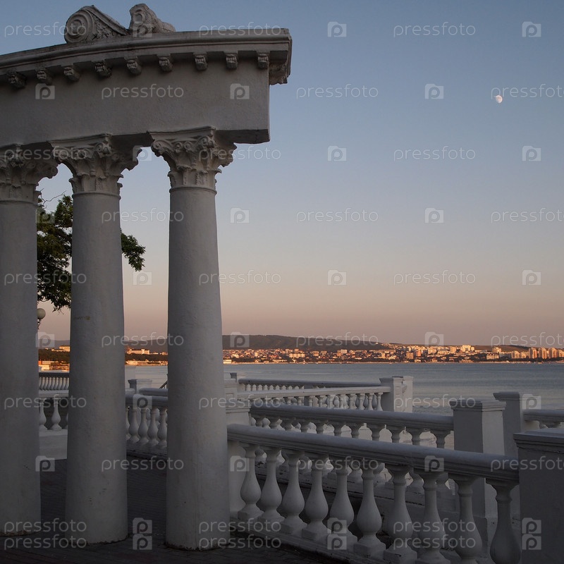 Красивое здание с колоннами на берегу моря