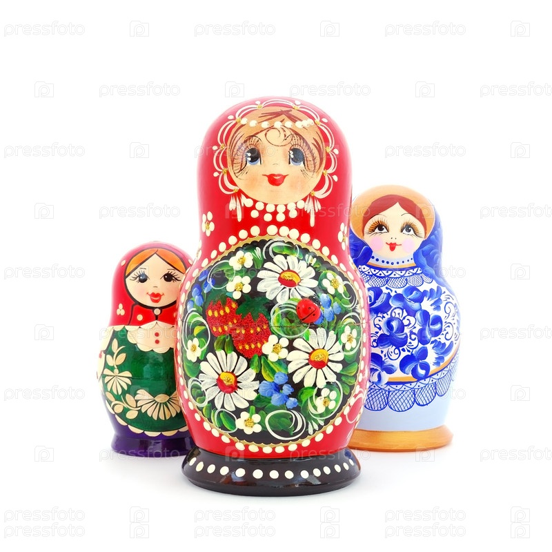 Российские матрешки на белом фоне