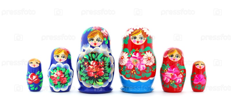 Российские матрешки на белом фоне