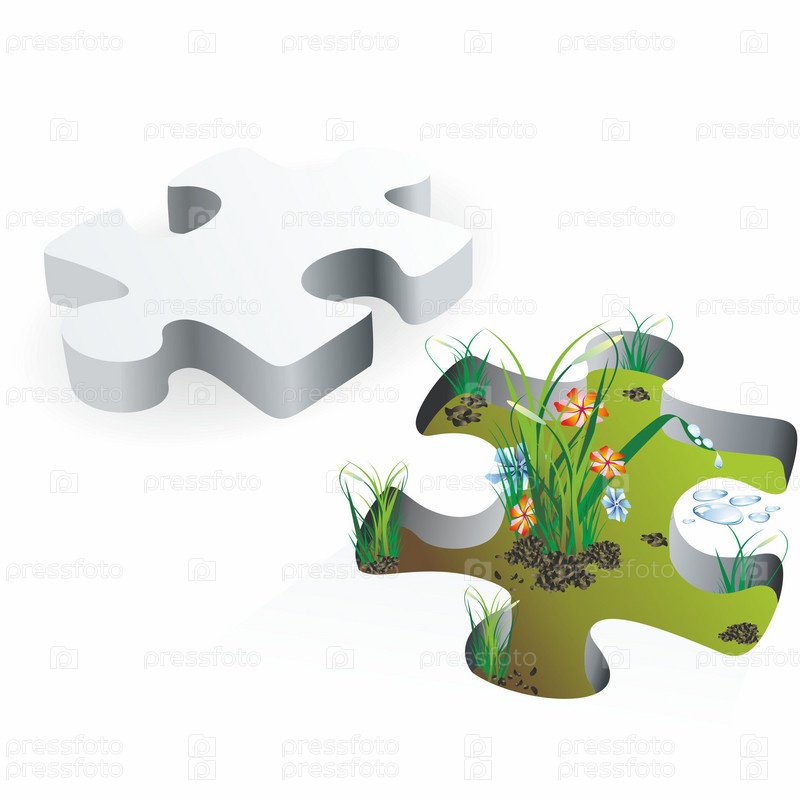 Детали головоломки и растения, изолировано на белом фоне