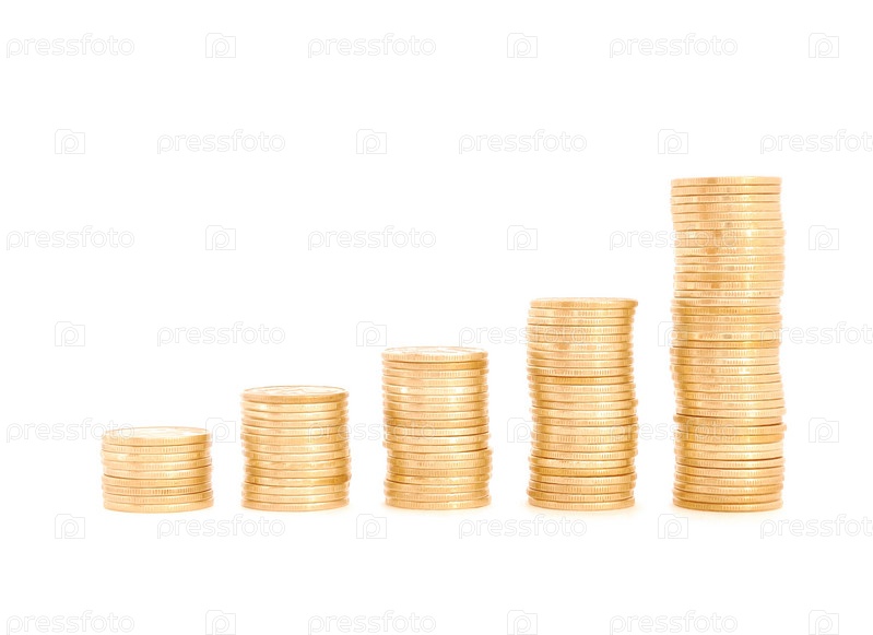 Стопки монет на белом фоне