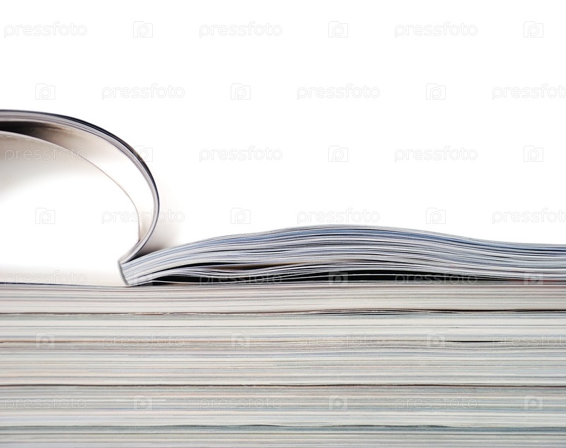 Стопка журналов на белом фоне