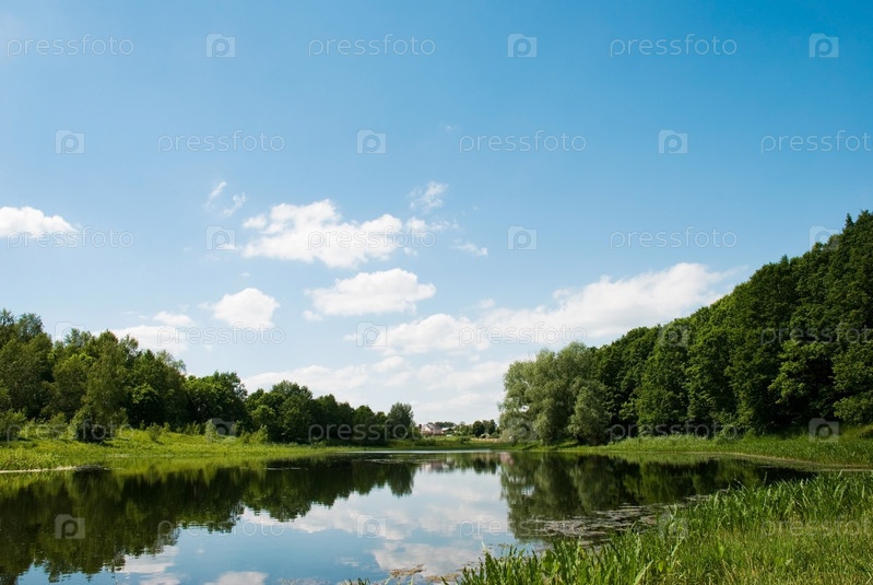 Озеро в деревне, лето